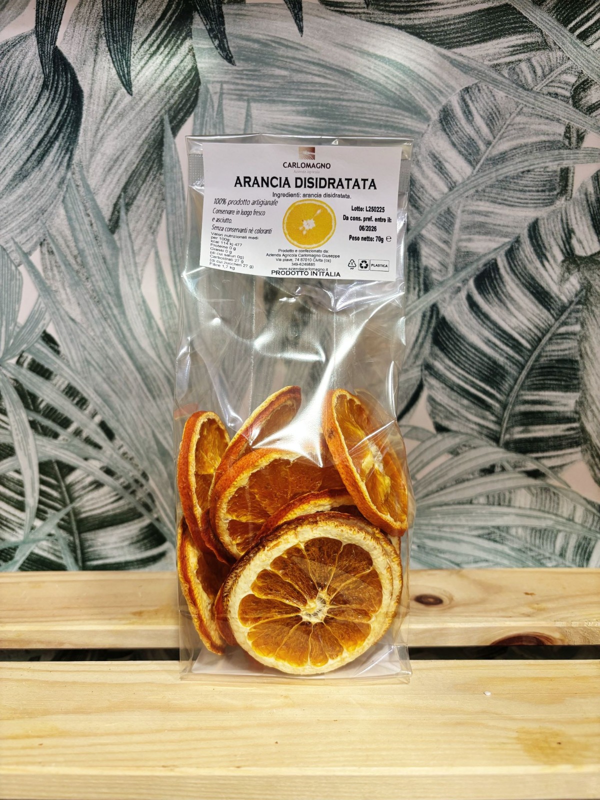 Pratici e gustosi chips di arance calabresi disidratate. Ideali da gustare come snack salutare ed energetico durante la giornata.
