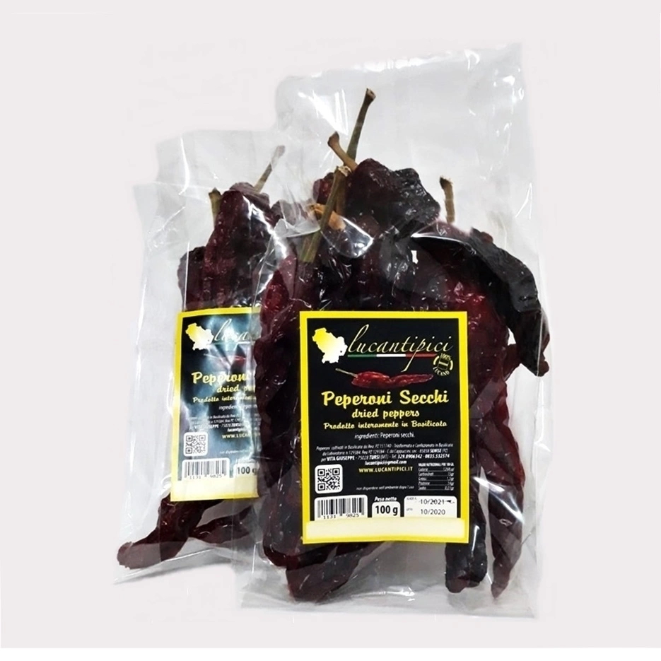 I peperoni secchi di Senise non puliti sono l’autentico orgoglio lucano, coltivati tra i calanchi di Senise e riconosciuti come Indicazione Geografica Protetta dal 1996. Questi cruschi (così chiamati in dialetto per la loro consistenza unica) vengono essiccati al sole secondo l’antica tradizione, mantenendo intatta la buccia esterna che racchiude tutto il sapore del territorio. La versione non puliti conserva semi e picciolo: un dettaglio che li rende perfetti per chi cerca il gusto tradizionale più autentico, senza compromessi. Ricchissimi di licopene, vitamina C e antiossidanti, i peperoni cruschi di Senise sono un superfood naturale a calorie bassissime (circa 320 kcal/100 g). In cucina sono versatili: fritti in olio extravergine d’oliva per 10 secondi diventano l’accompagnamento irresistibile di baccalà, patate lesse, salsicce…. Ideali anche per preparare la famosa “polvere di crusco”, un condimento piccante-dolce che esalta pasta, zuppe di legumi e bruschette. Ogni filo di peperoni secchi di Senise non puliti porta con sé l’aroma del vento lucano e il calore del sole estivo, trasformando ogni piatto in un’esperienza sensoriale unica. Acquista ora i veri peperoni di Senise essiccati interi e porta in tavola la Basilicata più genuina: croccantezza ed esplosità. Perfetti per chi ama i sapori forti e la tradizione contadina lucana!